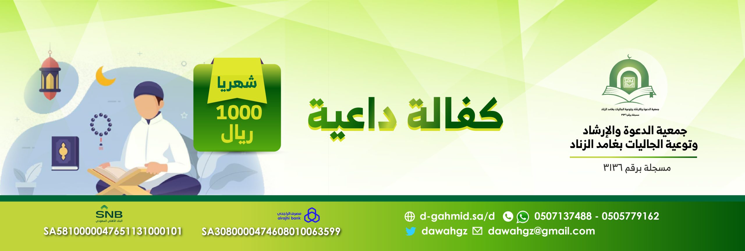 ساهم بدعم برامجنا وانشطتنا الدعوية من خلال ارسال الرقم 1 الى 588424 من خلال رسالة نصية عن طريق STC وزين و موبايلي